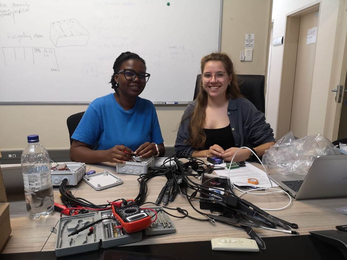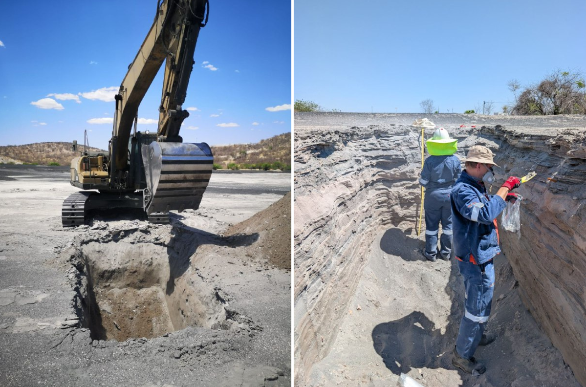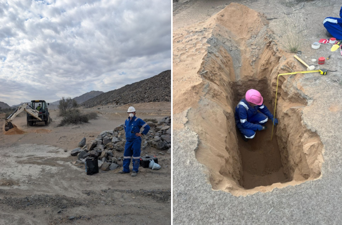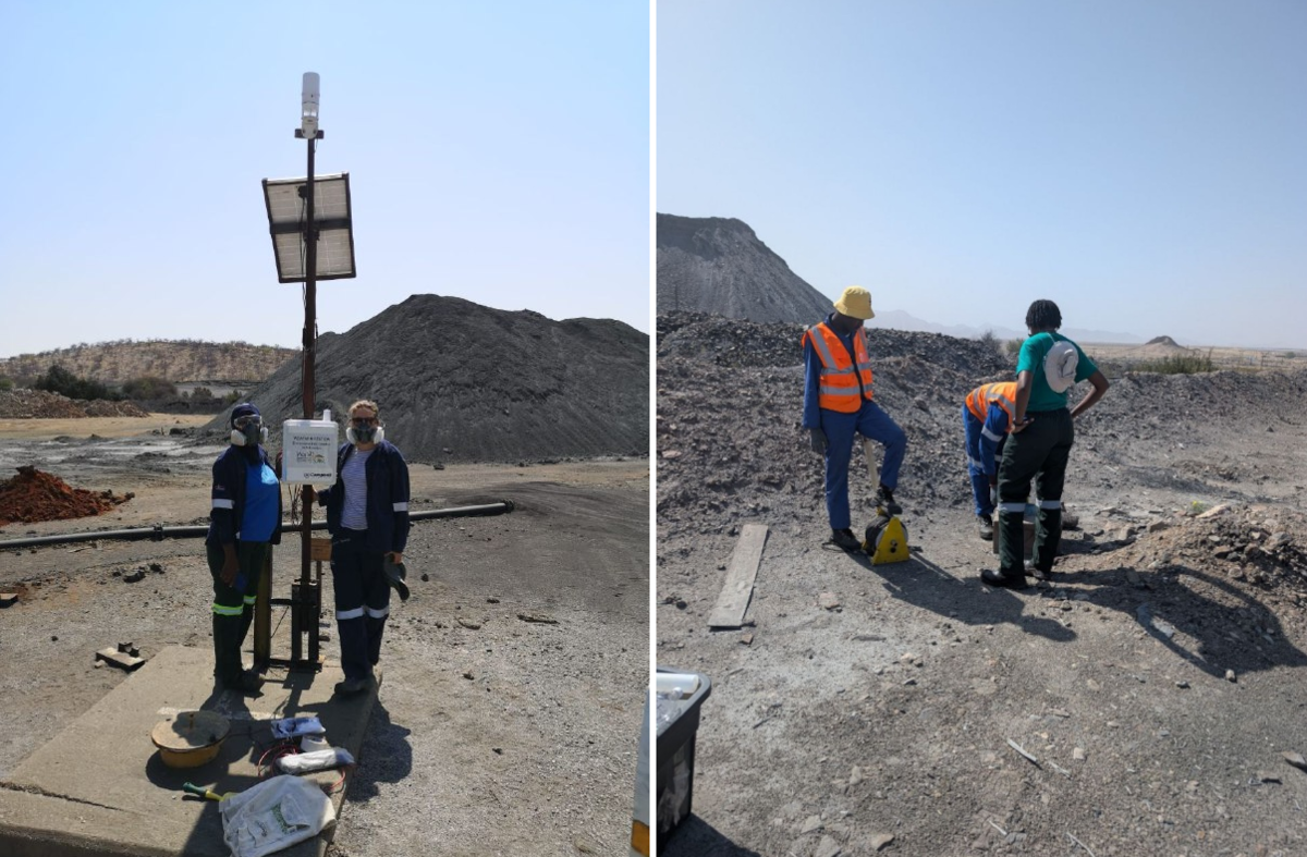 During the first week in Tsumeb, Prof. Dr. Stefan Norra and Karoline Kny (Uni Potsdam) installed a new weather station that now records temperature, humidity, and precipitation at high resolution. Thanks to the strong support of the local team—especially Kamuiiua Kamundu (Sinomine)—the system was fully operational within days. Two custom-built low-cost soil sensors complement the station by measuring soil moisture, pore humidity, and temperature. An excavator enabled the collection of deeper tailings samples, providing valuable material for further analysis.